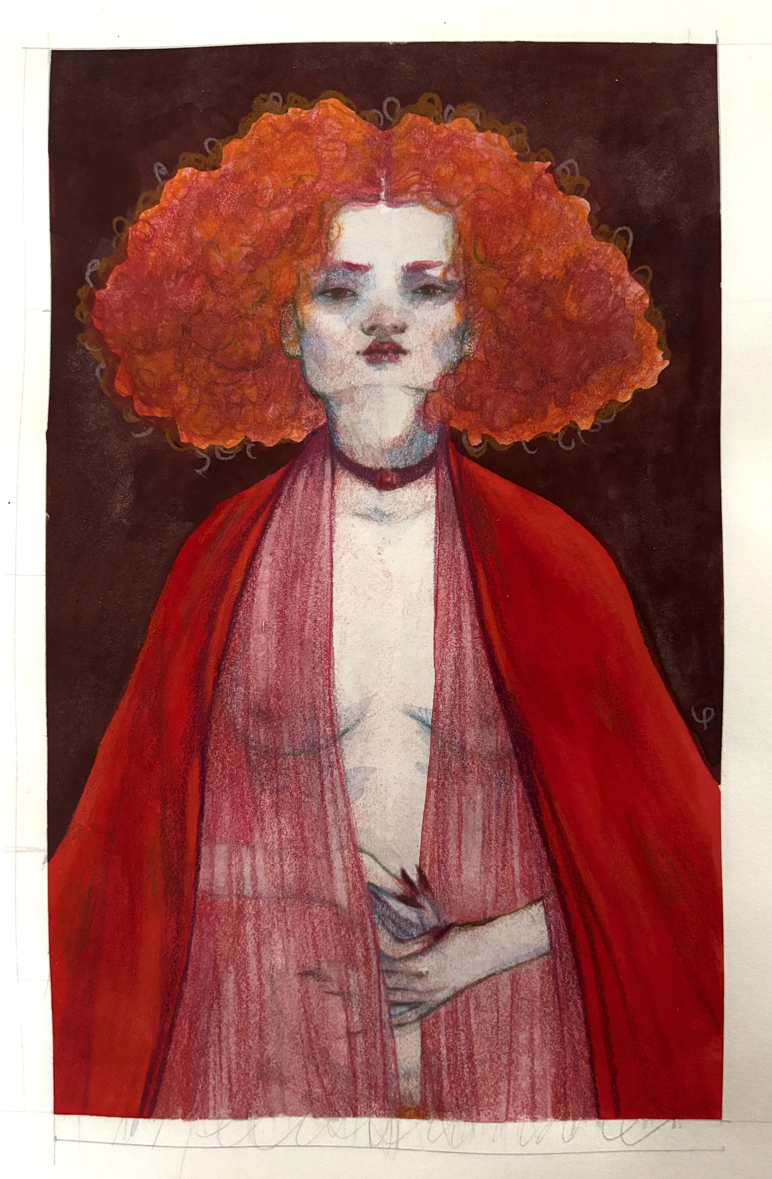 Pour ce qui est de Game of Thrones, l’obsession tient bon. Je fais très attention de ne pas regarder quoi que ce soit sur internet, afin de ne pas gâcher les personnages dans ma tête. J’aime les imaginer sans être influencée par les acteurs de la série. Melisandre était particulièrement forte dans ma tête, quel personnage un peu dégueu. J’ai décidé de sortir ça sur papier. Ça faisait longtemps que je n’avais pas illustré en couleur sur papier comme ça, avec ces médiums (aquarelle + crayons de couleur). Involontairement, elle est très « Club Hiver » 🤪 ce mix de couleurs me parle vraiment on dirait!