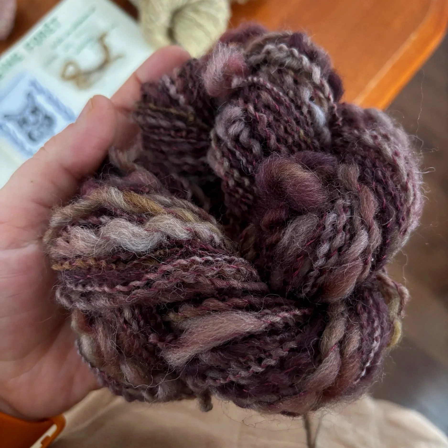 Comme je vous disais, j’essaye de faire un fil plus texturé, genre art yarn avec mon club hiver. C’est assez loin de ma zone de confort en tant que fileuse, et pour l’instant je ne m’amuse pas tant que ça! Je trouve que c’est beaucoup d’efforts, et je ne trouve pas mon flow. J’ai retordu environ la moitié de mon single, mon brin épais et fin. Il me reste la deuxième moitié à retordre, ma bobine était pleine.