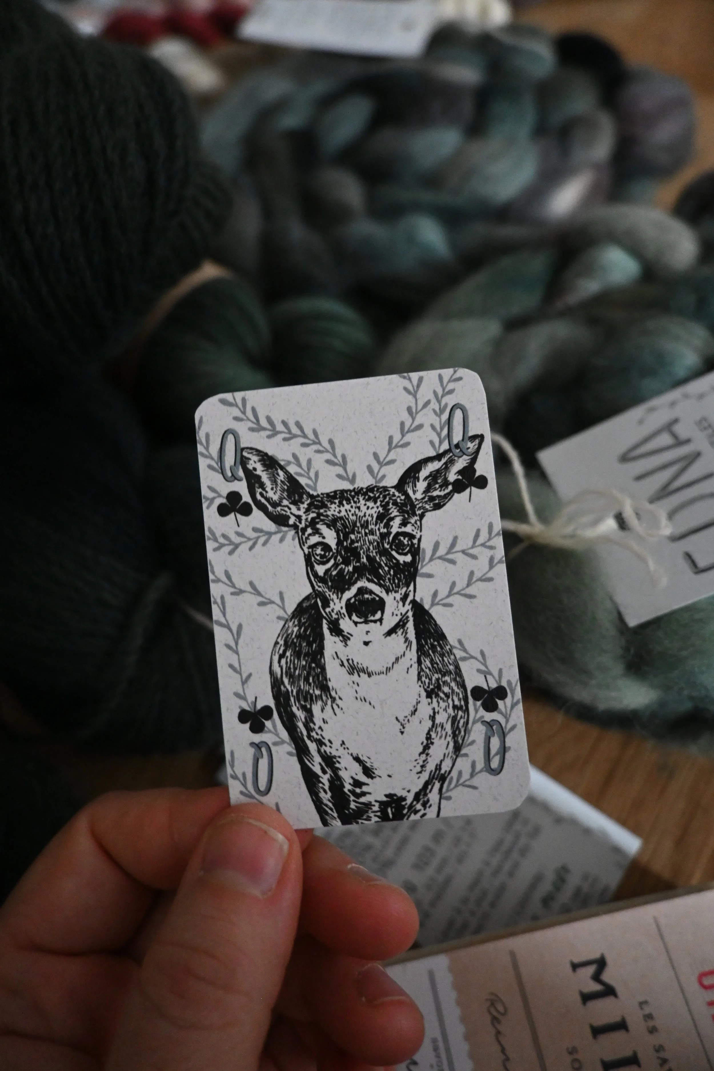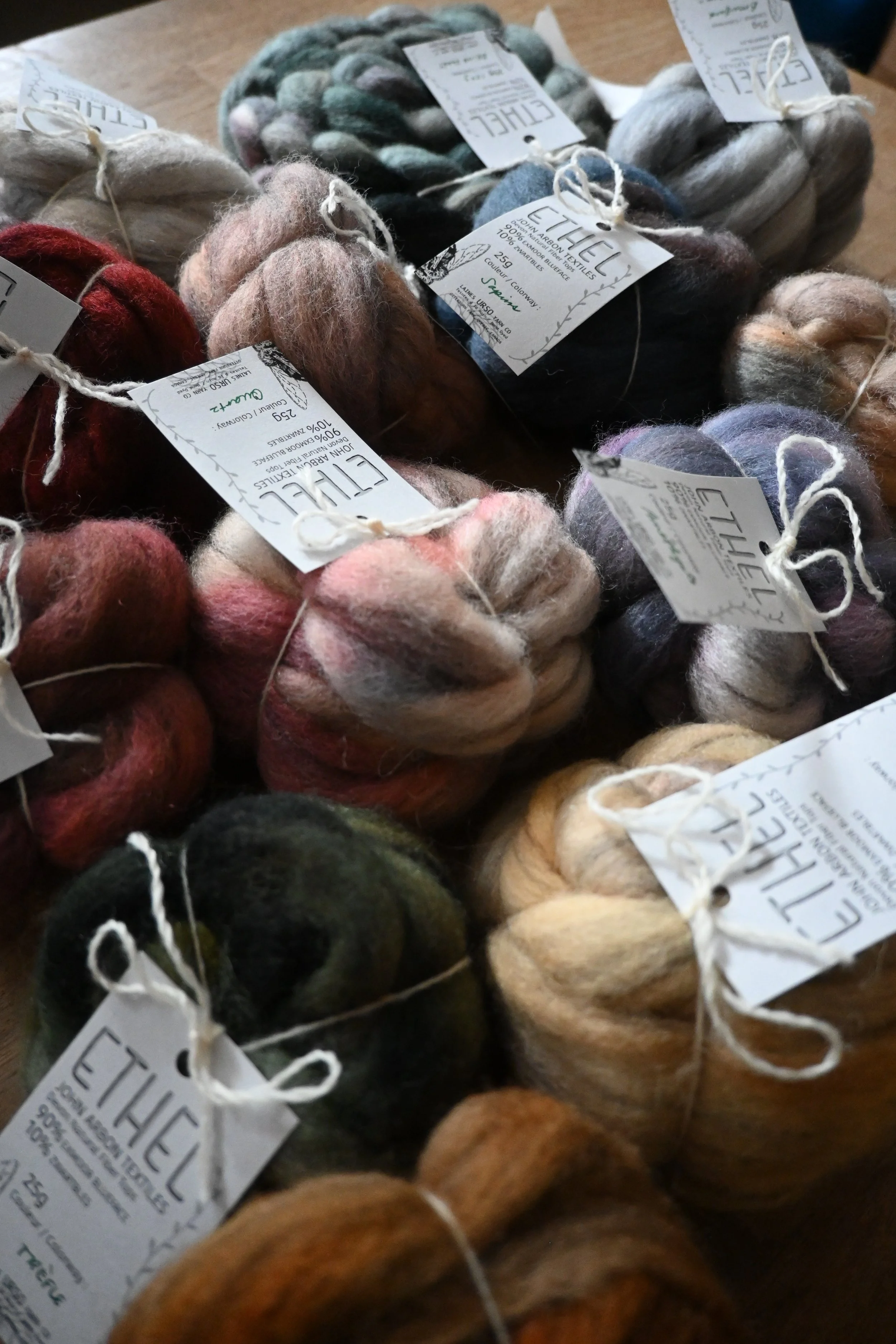 In both cases, the fiber choices are the same. For yarn, I’ve chosen to keep Urso PFB, and we’re adding John Arbon Exmoor Sock 4 ply. Ideal options for your socks—both soft and pleasantly woolly. The spinning fiber options are in the same spirit: undyed BFL fiber, or Exmoor Sock fiber from John Arbon.