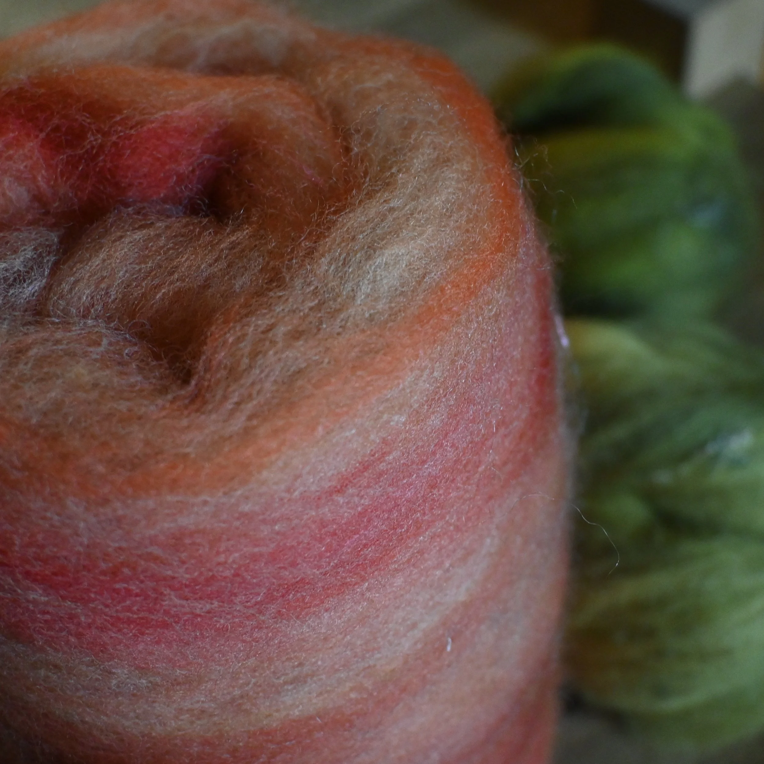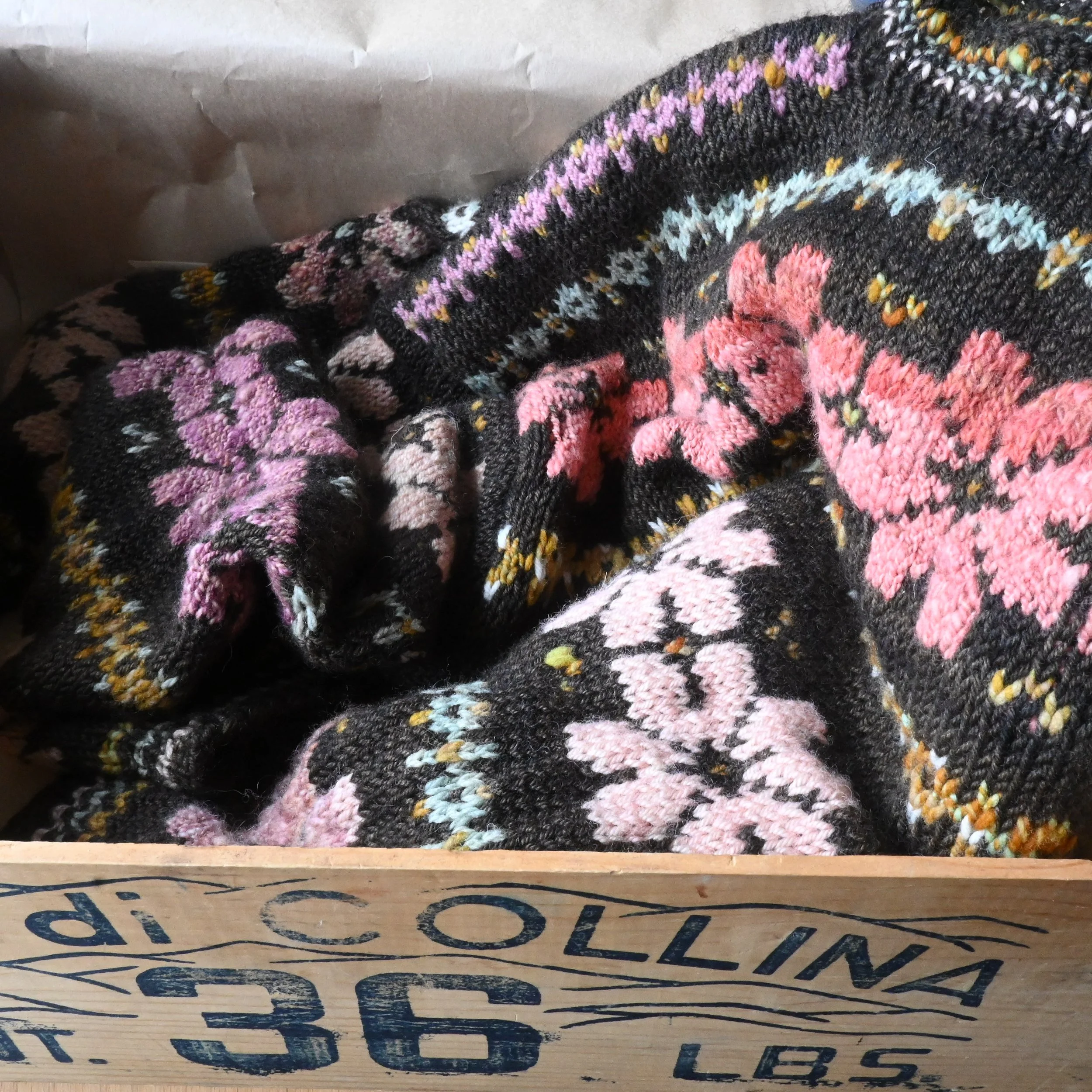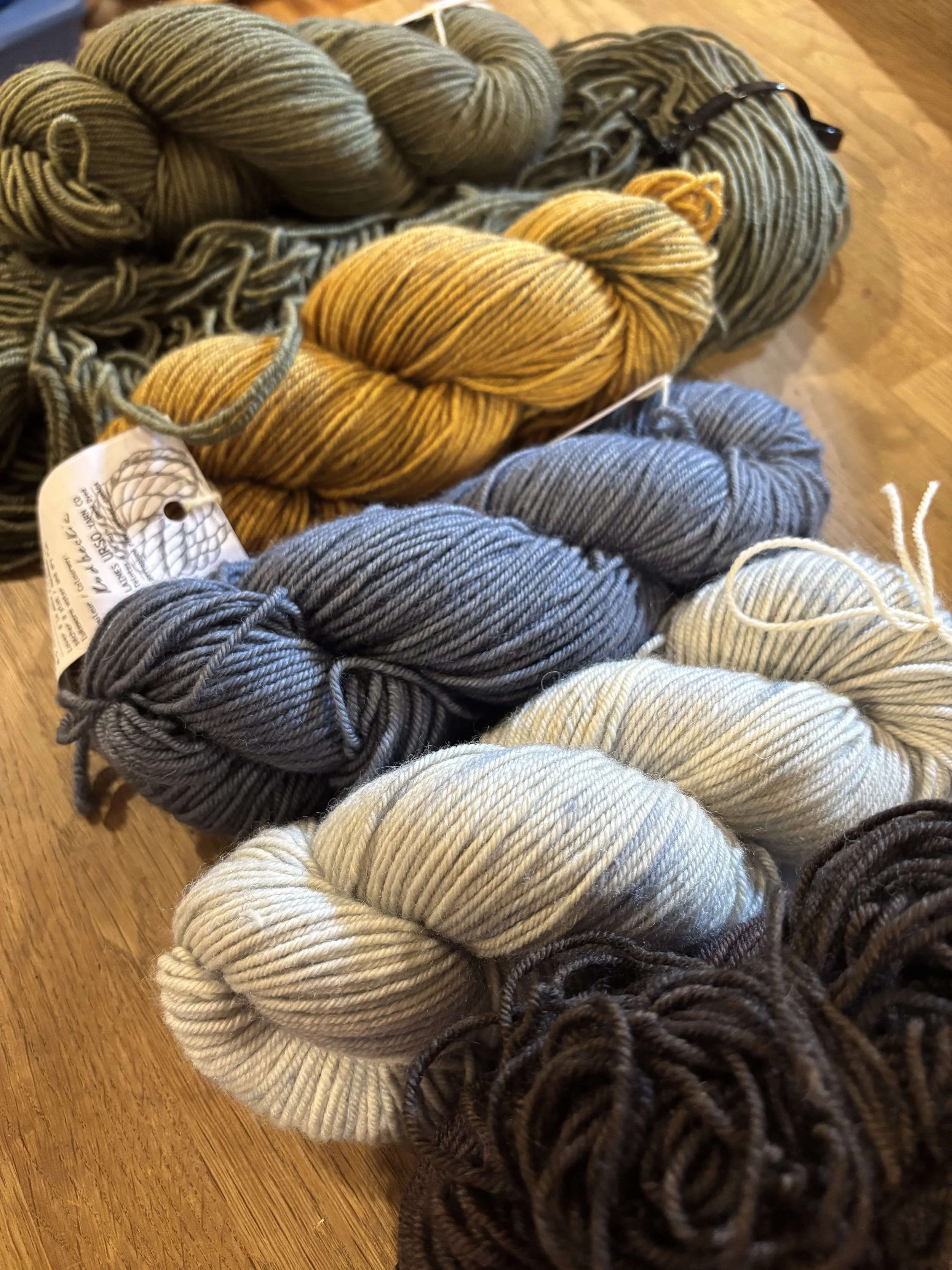 De mon côté, je suis en plein tricot pour un futur design, j’utilise un mélange entre des fils filés à la main avec mon tout premier calendrier de l’Avent (celui de 2023), et des fils de Brebis du Beaurivage.